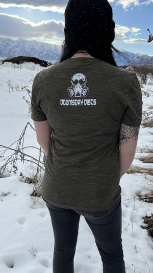 This shirt is patterned after the popular Blackout in Toxic Waste plastic with a comfortable, soft fabric that has a "dirty" look with little lines throughout. With the altered Blackout stamp design, it simply looks amazing. The back as a Doomsday Disc logo tag. We made a lot of these so that you can get them at a great price.