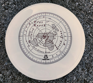 The Flat Earth is a midrange that is approved by the PDGA for use in sanctioned events. The Flat Earth is a straight-flying midrange with a slimmer profile and a small micro-bead at the bottom of the rim. The plastic type is Survival which it a premium, opaque plastic. The plastic is "finger-printy" as some would call it, so it is not advised to use this disc during any criminal activities.