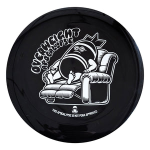 The Apocalypse is proudly the most overstable, high-speed driver in the market. It is so overstable that calling it a "distance driver" is somewhat misleading. Though it has a wide rim that makes it very high speed, we doubt that anybody will be able to get any kind of distance out of a disc that fades so immediately and so dramatically. This disc can handle maximum power and will still dump hard, probably even in hurricane force winds (note: not yet tested in hurricane force winds). It is a very exciting disc for overhand throws and is an ultimate utility driver to get around objects when you would otherwise feel trapped. The Apocalypse is coming, so be prepared.