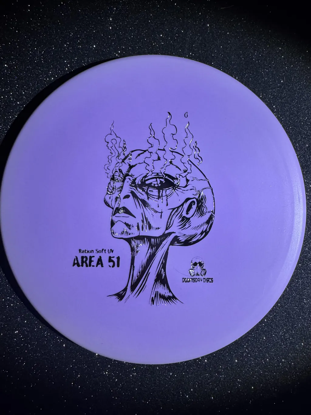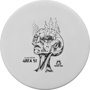 The Area 51 is an approach putter that is excellent for short, pinpoint throws, flying straight with a slight end-fade to reach the target. Some players also enjoy it as a low profile putter and use it to finish at the basket. Either way, the Area 51 is one of the disc golf world's most treasured secrets, and now it is available in a softer blend of baseline Ration plastic.