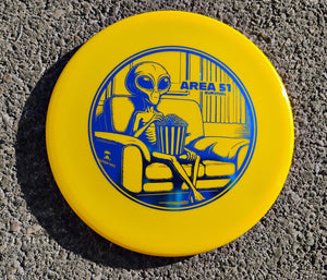 The Area 51 by Doomsday Discs is a stable approach disc that is easy to control whether throwing backhand or forehand. As part of the Conspiracy Line of discs it attests to the fact that there is a lot we are not meant to know, but with the Area 51, you may discover the secret to a better short distance game.