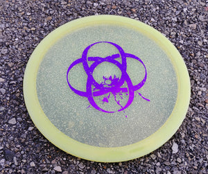 The Bunker Buster is an oversized driver because Doomsday Discs realized that there are very few oversized drivers in the disc golf market. We wanted a disc that could push the limit of the 200 gram maximum allowed by the PDGA which means that the disc needed a wide diameter. With a 24-centimeter diameter, we feel this monster is a disc that stands out and will always turn heads in any round. The “retooled” version is different than the original prototype because it has a slightly deeper rim which added significant stability to the disc. The disc was PDGA approved on July 31, 2023 and this new edition is more overstable, making it a disc with a dependable fade that you can throw as hard as you want. Consider throwing this disc to be a workout, building arm strength for both disc golf and survival.