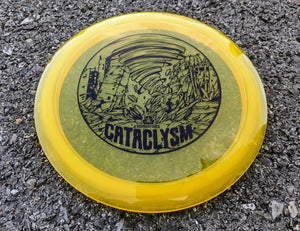 The Cataclysm is one of the favorite distance drivers in the Doomsday lineup. It has enough stability to really torque it when thrown, then it delivers a great S-curve flight before fading back to earth. The Isolation plastic is a durable, translucent blend. The Cataclysm is coming, so take shelter and load up on good discs like this one.