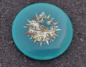 The Depth Charge is an amazing approach disc with a very boxy look. It's premium plastic brother to the Land Mine and features the same look and feel with a more narrow rim thickness. It's perfect for approach shots when you don't want the disc to go too far because it will "hit the breaks" and drop to the ground once it looses its velocity rather than gliding past the target-- a great choice when there's danger behind the basket. Clandestine plastic is a translucent premium blend with sparkles.
