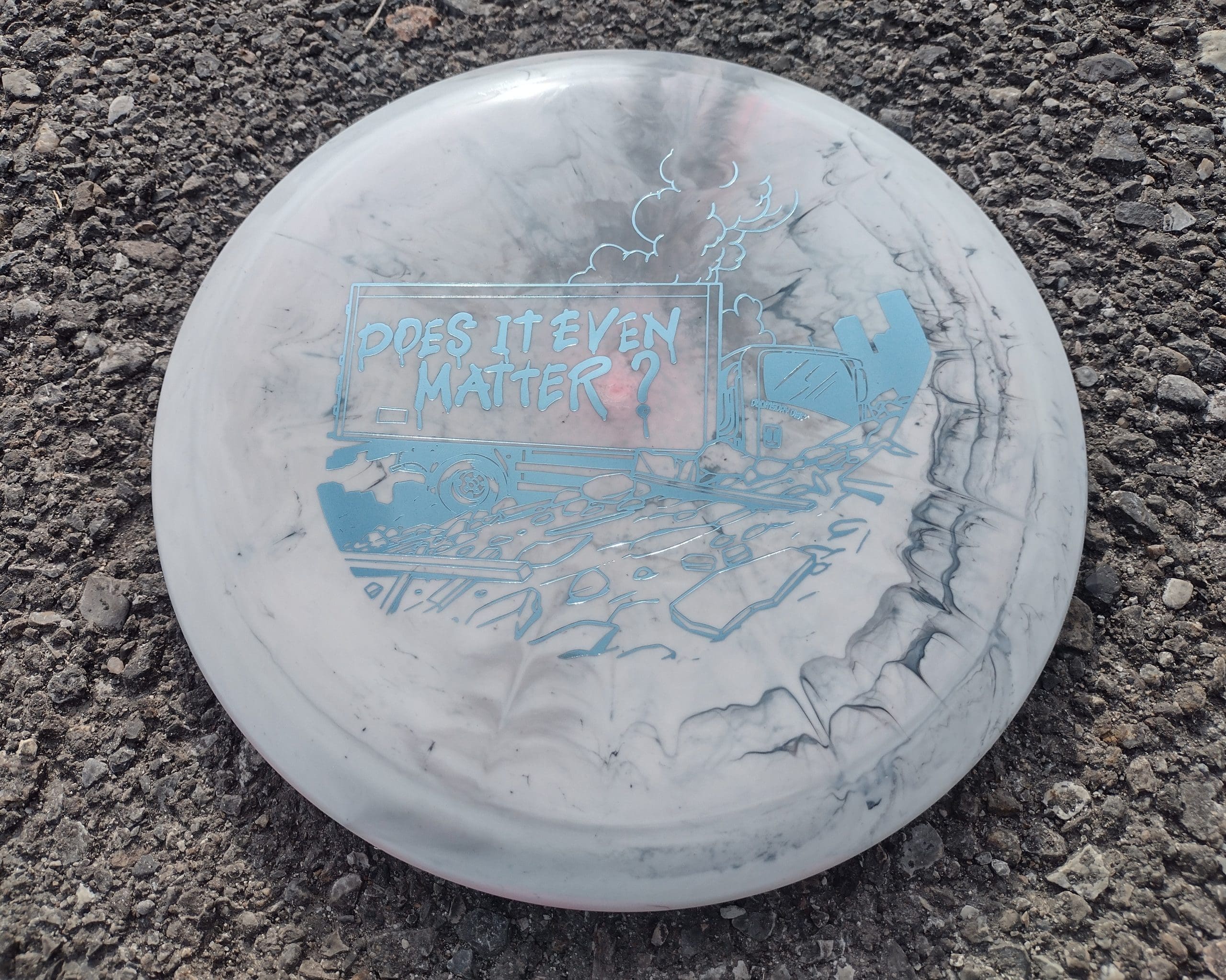 The Desolation is an overstable midrange (though nothing like a Frag) which is comfortable in the hand with a deep enough rim for great grip and release. It will always fade at the end of flight to help navigate around the smashed buildings and burnt-out cars of the not-too-distant future. The weights tend to range on the upper end of 170-176 grams. The Desolation is part of the Catastrophic Line of discs, made in the USA.