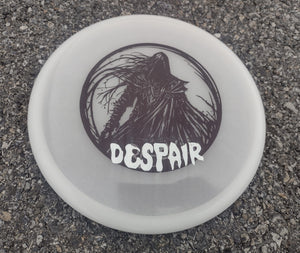 The Despair is a very dependable midrange that has a slightly understable turn and minimal fade, making it an excellent choice for short-range, precision placement. The Glow Isolation plastic is a durable, premium plastic that glows very well in different colors, making it a great option for disc golfing during in the endless nights after a super-volcano eruption.