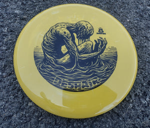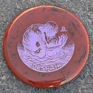 The Despair is back, and it's more beautiful than ever. Shockwave plastic is a premium, stiff blend, similar to Isolation plastic, but with beautiful "shockwave" swirls that tend to radiate out from the epicenter of the disc. These Despairs are flatter than the Survival plastic, making them just a tad more stable. They remain the perfect point-and-shoot disc, which may prove useful during your next round of disc golf or on your next zombie hunt.