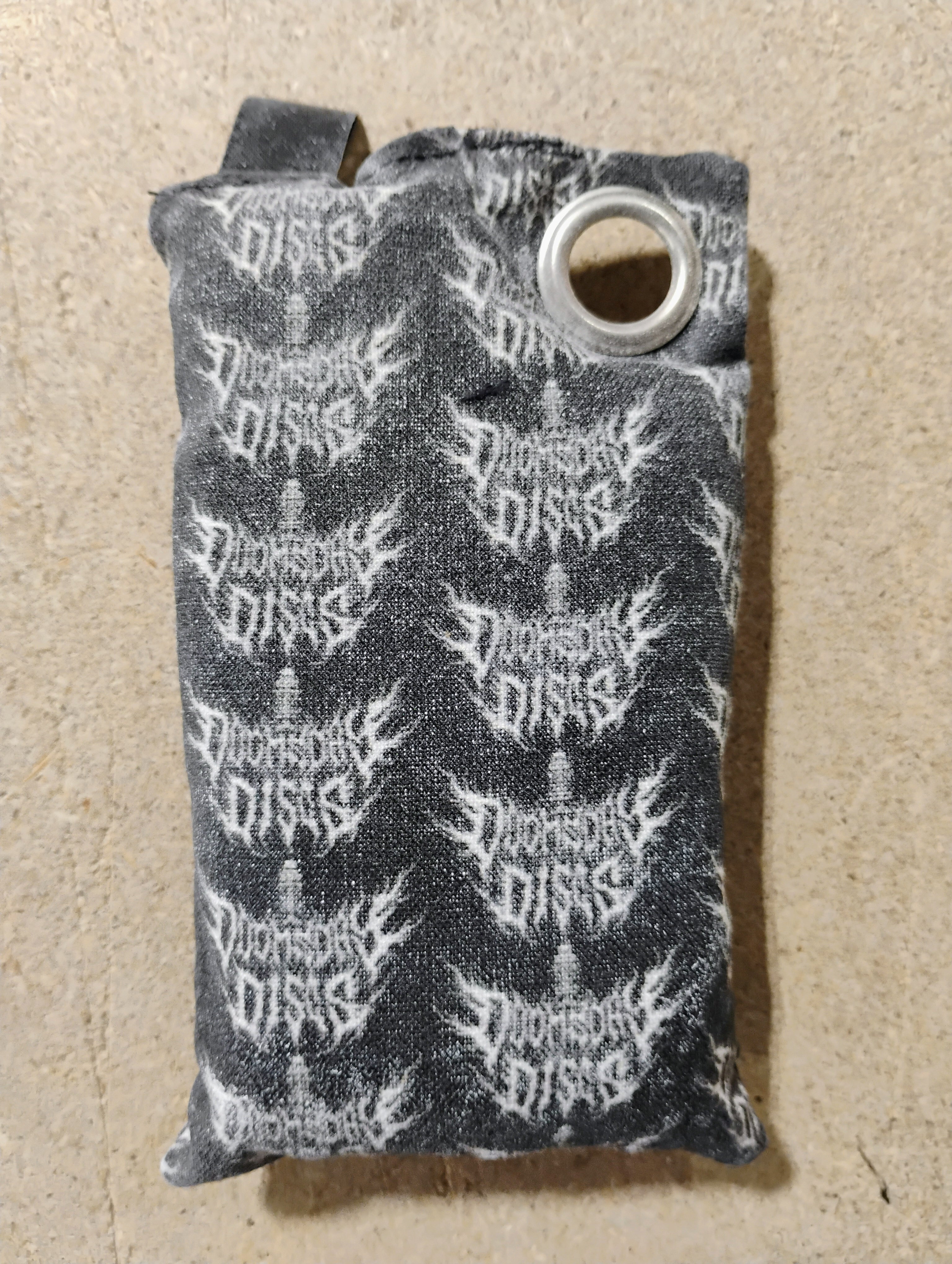 The Doomsday Discs Chalk Bag is a step above all other similar grip enhancers. Why? Because it's Doomsday, and it's handmade with love by Team Doomsday member "Pupperprep." They come with a large grommet so that you can hang it from your bag with any clip or carabiner. These are top-notch products!