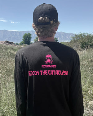 Whether it's July or December, the nuclear winter will be chilly. Prepare yourself with a long sleeve Enjoy the Cataclysm tee.