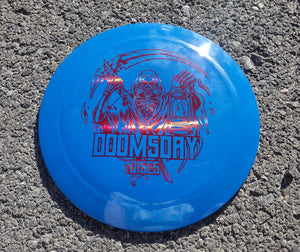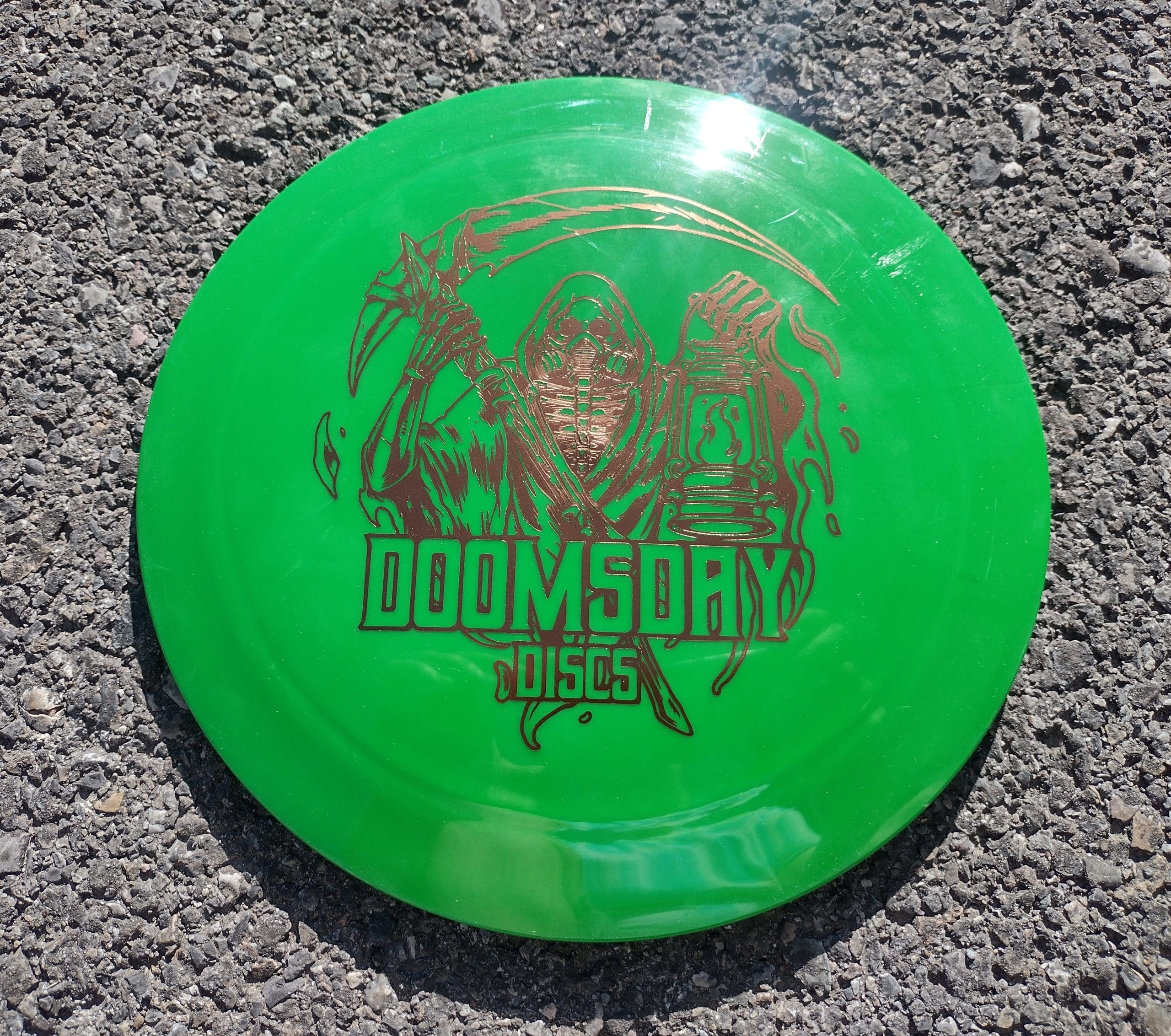 The Flying Guillotine is a prototype disc that was run in the factory that handles the Conspiracy Line of discs. However, the run did not have the intended results and the discs ended up having an outer edge that's too sharp and an inside rim that's too shallow. It makes the disc very aerodynamic and fast as it slices through the air, but not able to pass PDGA standards for sanctioned tournament play. But if you'd like to use the disc in your casual play on your local course, or just want to try a fast, flat distance driver, give the Flying Guillotine prototype in premium plastic a try.