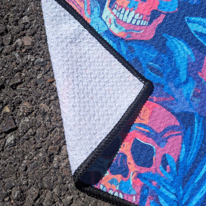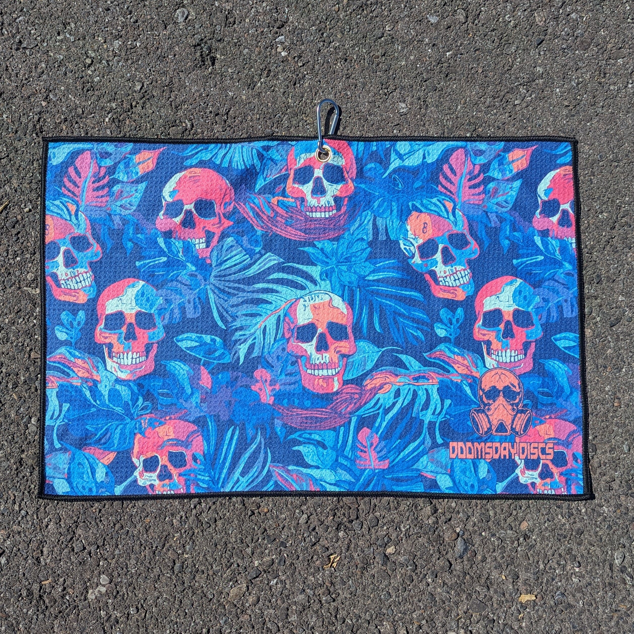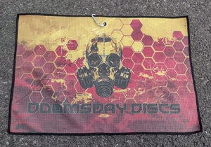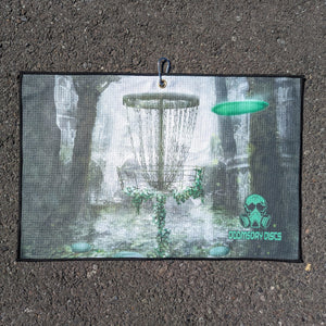 These waffle weave towels are awesome for wiping off discs, cleaning wounds, and drying up tears. They have a metal grommet in the center top and a metal carabiner to attach the towel to your bag.