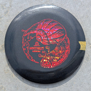 The Monstrosity is a variable rim-width disc design that is related to the "Abomination" (another variable rim). The Monstrosity has two sides with wide rims and 2 sides with a more narrow rim width. This not only provides a choice of sides for different grip preferences for players, but also creates an uneven weight distribution resulting in varying moments of spin inertia around the center axis. While the science behind this technology is new, Doomsday Discs is excited to create a Monstrosity that players can use to test flight paths and spin momentum with the different distribution of weight in the disc.