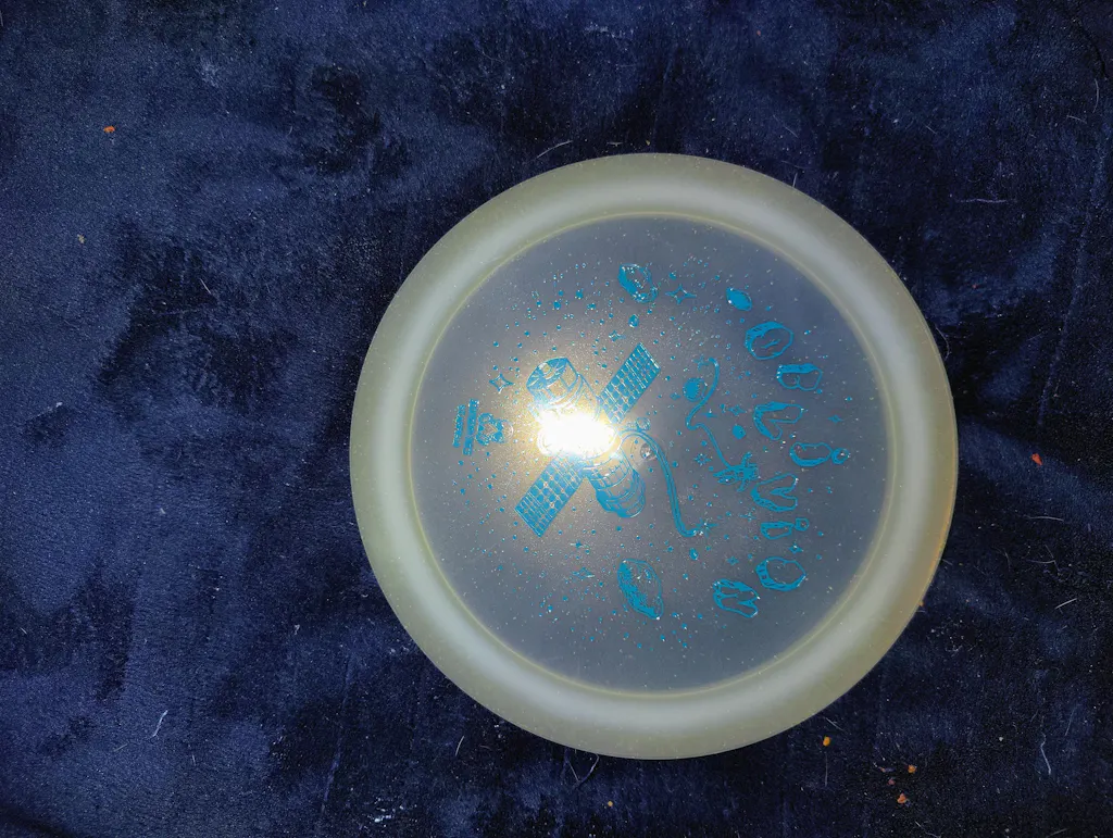 The Oblivion is a professional level driver for those who can throw into oblivion. Starfield plastic is not the tradition glow-in-the-dark premium blend. The main body of the disc does not glow. The glitter particles inside the disc glow, giving the disc the appearance of looking at the night sky full of twinkling stars...right before one of them turns out to be an asteroid descending to crater the planet. While it may not be the brightest disc in your glow bag, it will be one of the most bedazzled.
