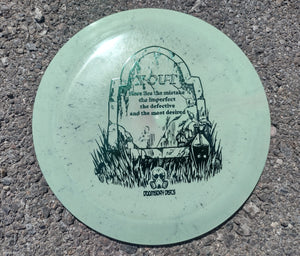 The Pestilence is the most understable distance driver in the Doomsday Discs lineup (so far) but for some reason, the Landfill (recycled) plastic blend seems to add just a little more stability to the disc flight. If you want to try out a Landfill edition of the Pestilence, give it a try. Sometimes the Landfill plastic has minor flaws due to the nature of it being recycled, but we sell it at a lower price to account for those imperfections. Despite any little specs, divots, or imperfections, they fly great! We're even stamping some with X-Out stamps, because they look good that way. And everybody knows that the dystopian future will be riddled with imperfections. Note: These discs often come in dark colors, due to the fact that it's a lot of recycled colors mashed together.