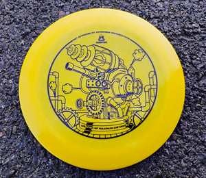 The WMD is a novelty disc golf disc that is 100% NOT approved by the PDGA or any governing body. The rim of the WMD is an ultra high-speed driver with a 25.8 millimeter rim width. That pushes the rim width to the technical standards limitation of the PDGA. While it might slip by on that, it definitely would not pass due to the hefty weight which runs between 180 - 190 grams with a standard driver diameter (it is not an oversized total disc diameter). So, like any good WMD, we feel like it best kept secret, under wraps, and unapproved. But doesn't mean you can't have a lot of fun throwing one around in your casual play. Plus, not every tournament is PDGA sanctioned, and we'll definitely make a Doomsday Demolition 2-disc challenge option available with the WMD. Pull this thing out of the bag and bomb this Speed 15 distance driver as far as you can!