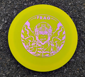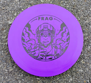 This is the super-overstable, utility midrange disc, the FRAG. It comes in Soft Ration plastic, flexible plastic which feels very buttery smooth. This is a disc that will get you out of trouble when you need something that doesn't go too far before dumping hard to the ground.